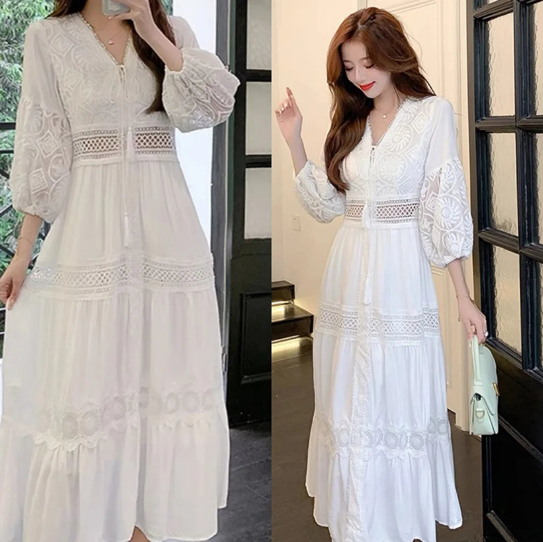 Go to the shopFlow into style with this floor-length A-line maxi dress, designed to bring out your natural elegance while keeping you comfortable. The hollow-out detailing, airy fabric, and flattering empire waistline make it the perfect choice for beach strolls, summer parties, or relaxed evenings by the sea.