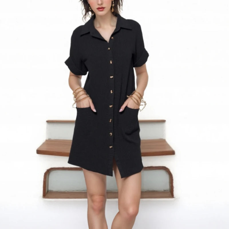 Go to the shopElevate your casual summer wardrobe with this sleek single-breasted mini dress. Crafted from high-quality polyester, it combines a straight silhouette with thoughtful detailing—perfect for daytime outings, casual gatherings, or weekend adventures.